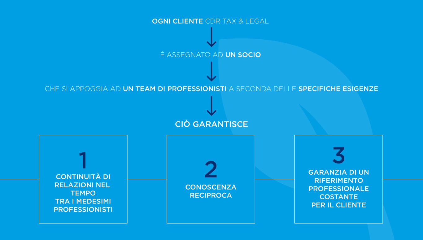 Il nostro metodo garantisce la conoscenza in capo a più professionisti delle caratteristiche peculiari e storiche di ciascun cliente.